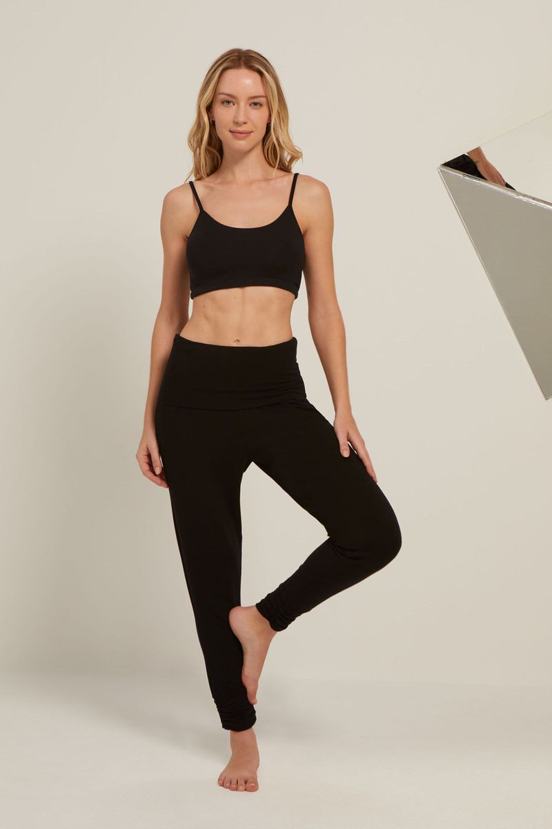Calça confeccionada em viscose de Bambu, DNA da Yogini. Roupa que respira, abraça, acolhe, refresca e aquece.