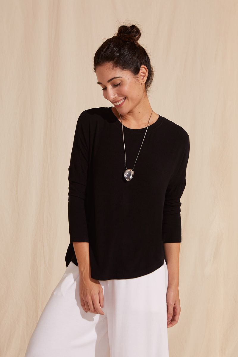 RoupaBlusaBlusa Manga 3/4 Preta Canelado Bambu Comfort