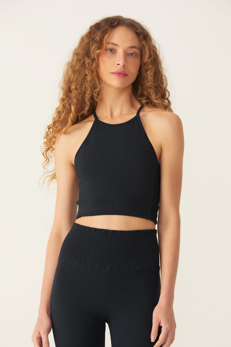 RoupaTopYoga FitnessTop Yoga Preto Lastex Tuti
