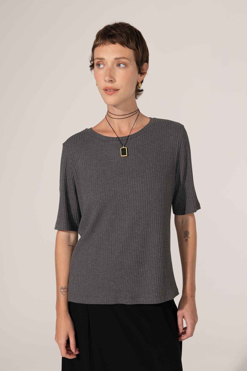 Blusa confeccionada em malha canelada de viscose com elastano. Oferece a fluidez e ótimo caimento da fibra de viscose, além do conforto e toque agradável da textura da malha canelada. Modelo levemente solto ao corpo. Decote redondo, mangas alongadas e aberturas laterais.