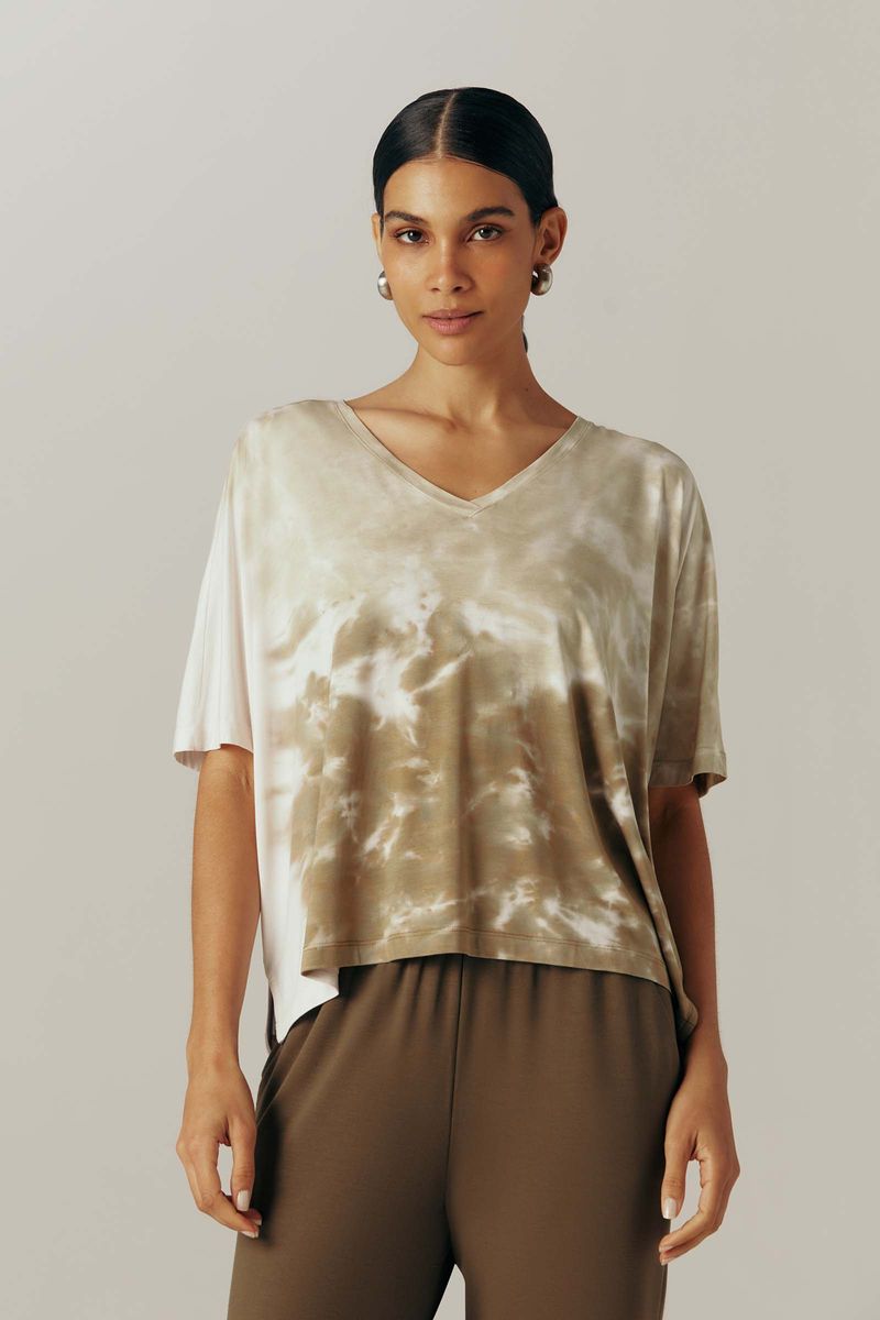 Blusa Decote V Tie Dye Verde Oliva Modal Yara