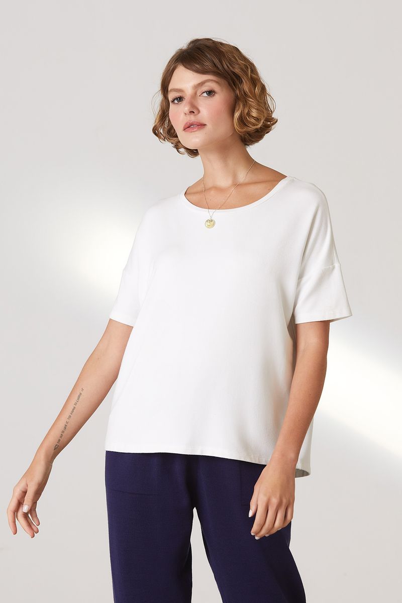 Blusa Manga Curta Off White Bambu