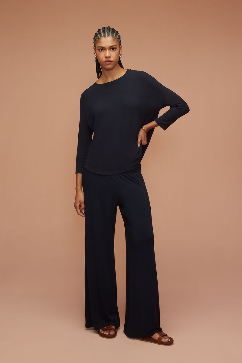 Calça confeccionada em viscose de Bambu, DNA da Yogini. Roupa que respira, abraça, acolhe, refresca e aquece. Apresenta toque suave e delicado, respeitando a forma do seu corpo e unindo conforto com caimento. Modelo pantalona com cós largo de lastex.