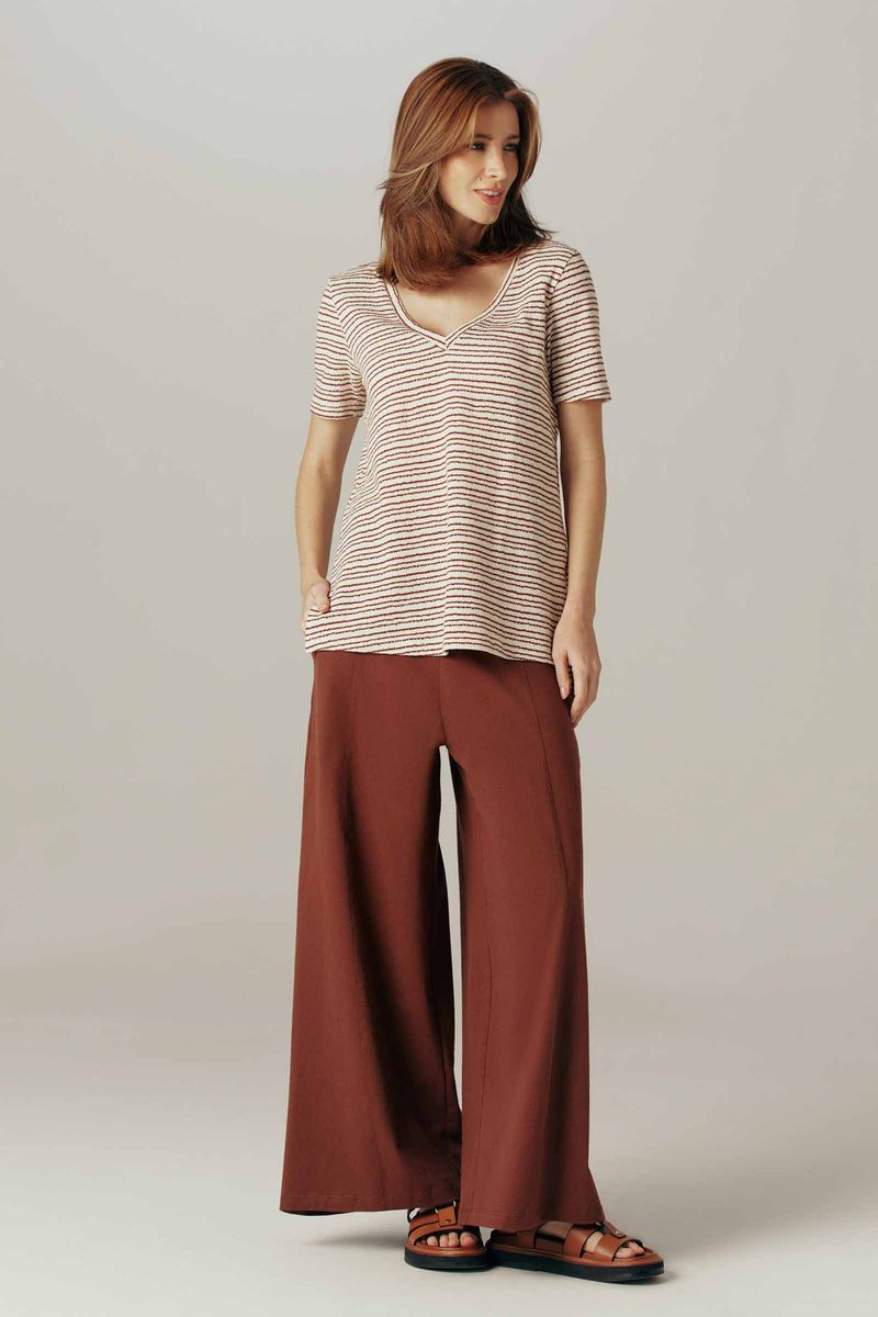 Calça confeccionada em malha 100% algodão sustentável. Tem o conforto e a maciez da fibra natural. Tem reconhecimento internacional, pelo selo BCI (Better Cotton Initiative). Modelo reto. Cós com elástico embutido, sem franzido. Recortes nas pernas, frente e costas. Bolsos frontais.