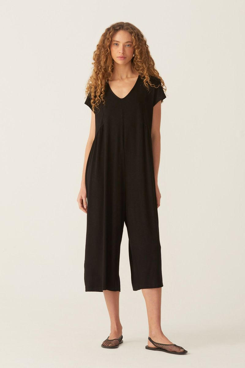 RoupaMacacao FemininoMacacão Pantacourt Preto Modal Eloa