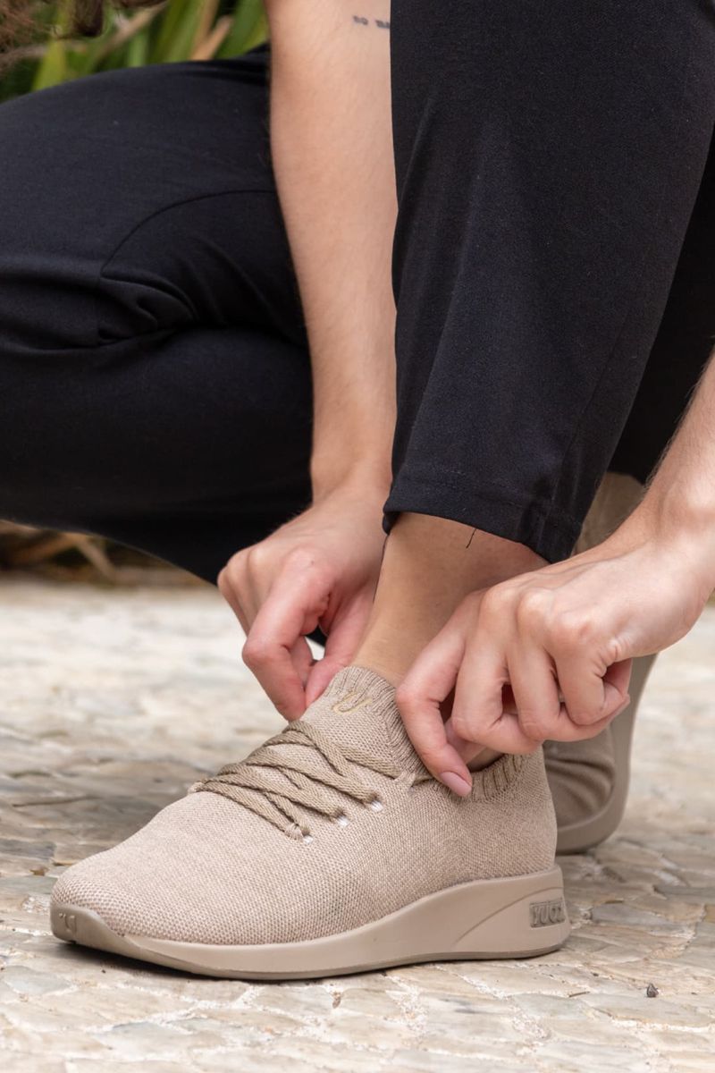 O Yuool Fit é um tênis de exercício para quem busca conforto e bem-estar. Seu cabedal é produzido com 50% algodão orgânico e 50% garrafa PET reciclada e rastreada, mantendo os pés arejados por meio de sua trama de knit. Sua entressola possui tecnologia super macia desenvolvida internamente por nós da Yuool.