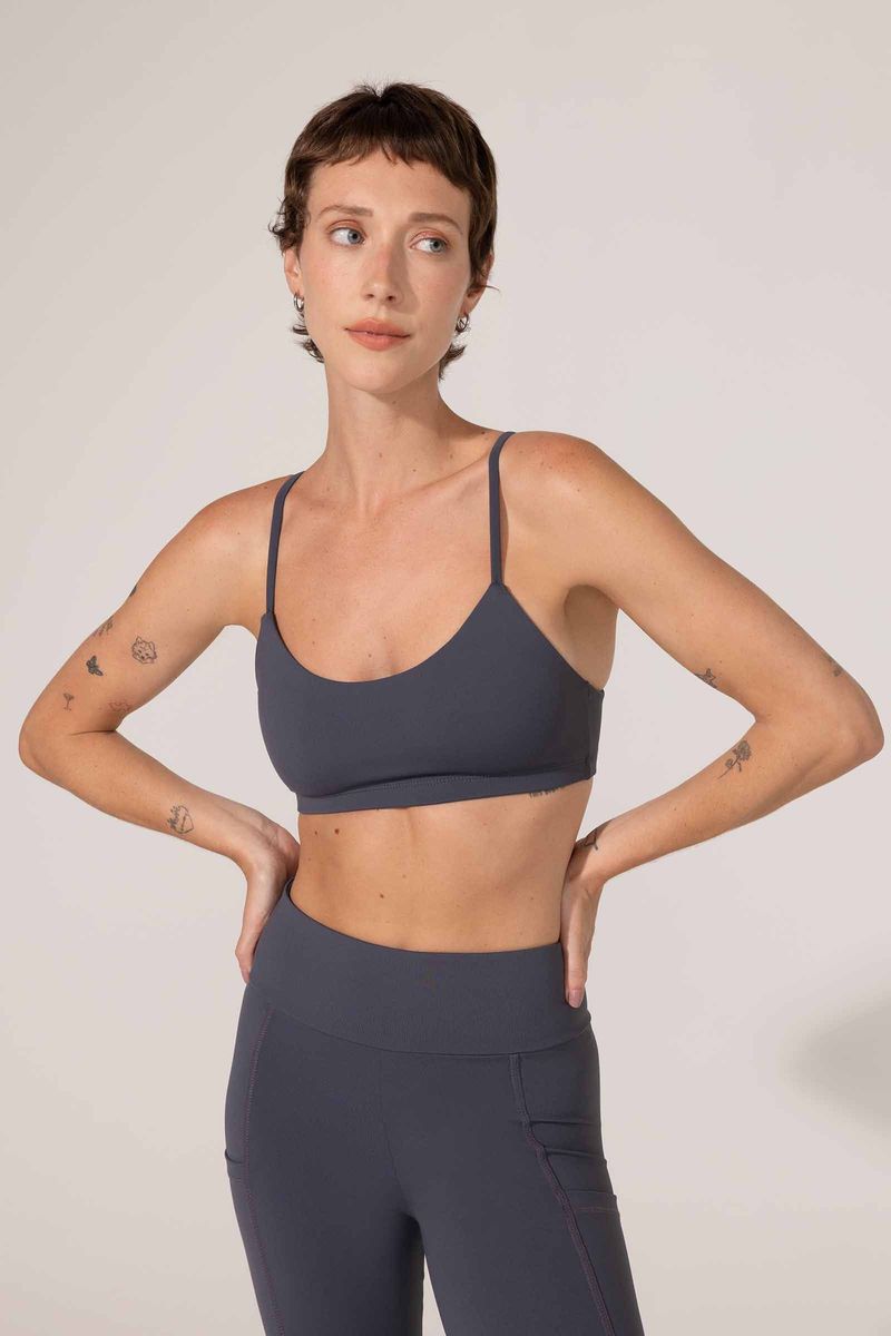 Top Fitness Alça Fina Cinza Escuro Maju